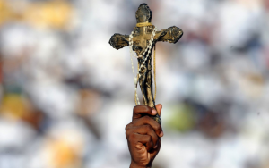 Crucifix with Rosary Draping Over It (Credit: Screenshot via Catholic News Service)